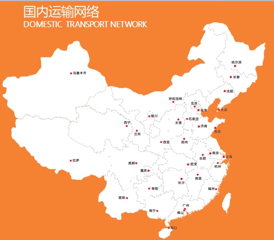 - Nationwide transport network and distribution coverage including the cities of Shanghai,Chengdu,Chongqing,Wuhan,Changsha,Nanjing,Tianjin,Qingdao,Jinan,Changchun,shenyang,Haerbin,Dalian,Guangzhou,Foshan etc.